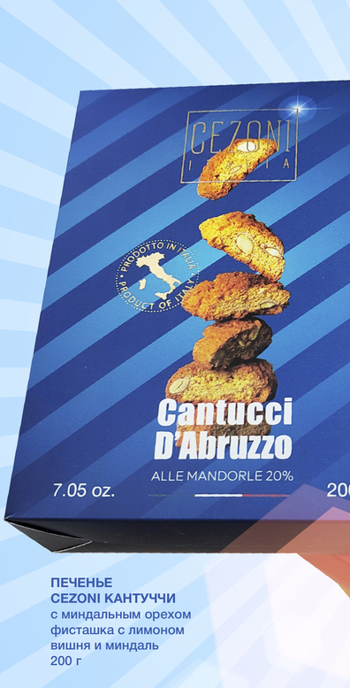 CEZONI Печенье Кантуччини Вишня и миндаль коробка 180 г